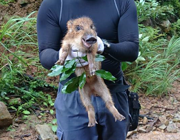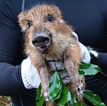 | 下刈の現場で大雨の影響かウリ坊が一匹はぐれたようで ウロウロと・・・ お母さんと会えればいいな!! |