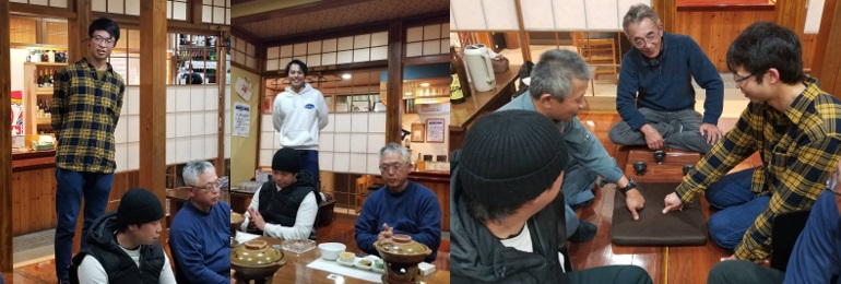 | 今月に入って2名の研修生がいらっしゃいました。 神戸に本社がある「シンエナジー」様よりA�見さんと 東京農業大学から大学生のA野さん、こちらは「ワーキングホリデー」を通して来て頂きました。 どちらも、「林業の現状や実施体験」を身をもって経験して頂きました。 大学生のA野さんは18日までだったので、心ばかりですが、歓迎会と送別会をかねて、 「遊民」で楽しい時間を過ごさせて頂きました。 東京から来た2人に是非鹿児島の味を食べて頂きたくて、「遊民さん」に無理を言って 郷土料理を用意して頂きました。美味しい鶏刺しや黒豚、キビナゴなど「カゴンま」らしい料理に 2人とも喜んで頂いたようです。ありがとうございました。 また、鹿児島の遊びとして「なんこ」大会をしました。 現代の鹿児島の若者もあまり知らないかもしれないですが、 鹿児島の古くからあるゲームですね!素朴なゲームですが、焼酎を飲みながら駆け引きをする、 意外と熱くなります。 お二人とも、慣れない作業だらけで大変だったと思います。 私たち「伊佐愛林」と共に過ごした時間が、将来や仕事に少しでもプラスになれば幸いです。 ご苦労様でした。 「シンエナジー」のA見さんは、まだ帰れません(^▽^) |