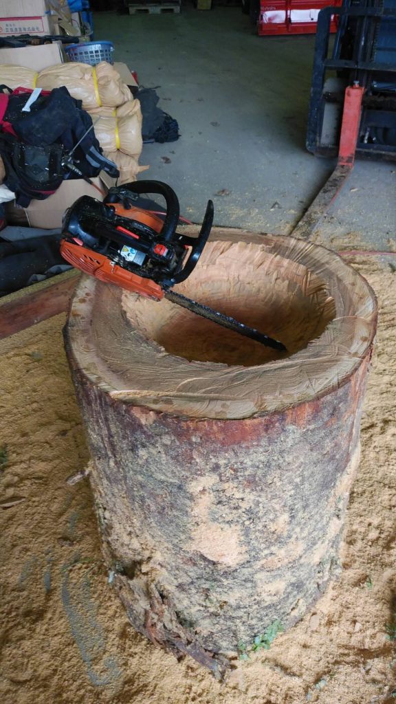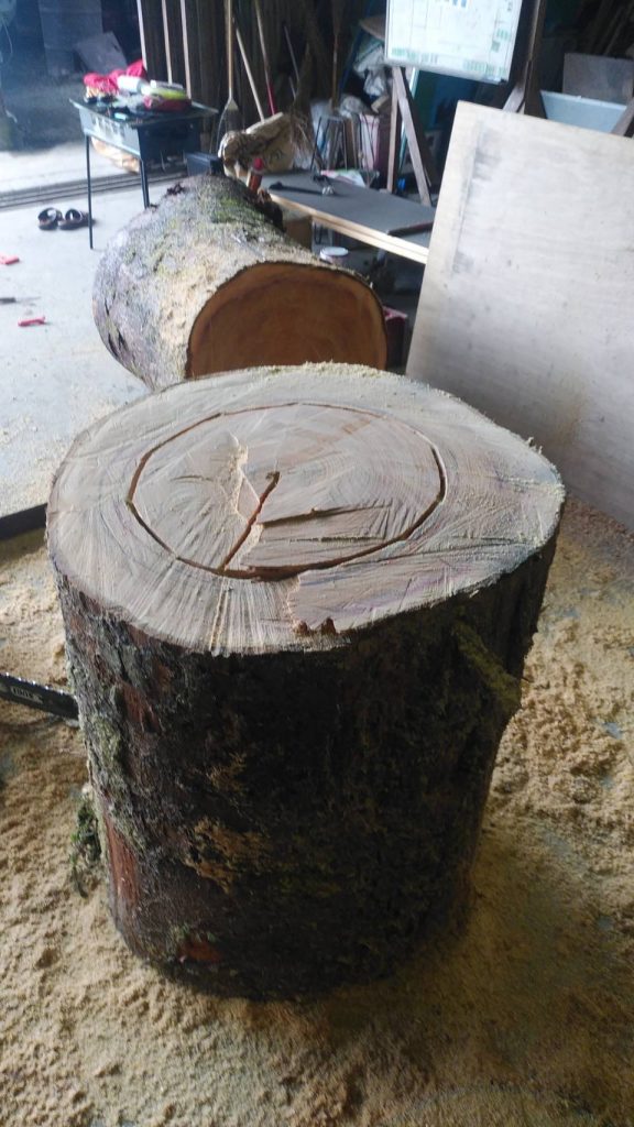 いよいよ今年の「餅つき」に向けての「臼」作りが始まりました